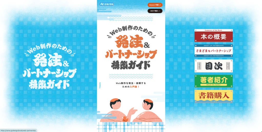 こちらは、近年グラフィックデザインでもよく見られる表現で、Webサイトでも多く見られましたが、その中でも印象的だったサイトは「カロア(Web制作のための発注&パートナーシップ構築ガイド)」のサイトです。