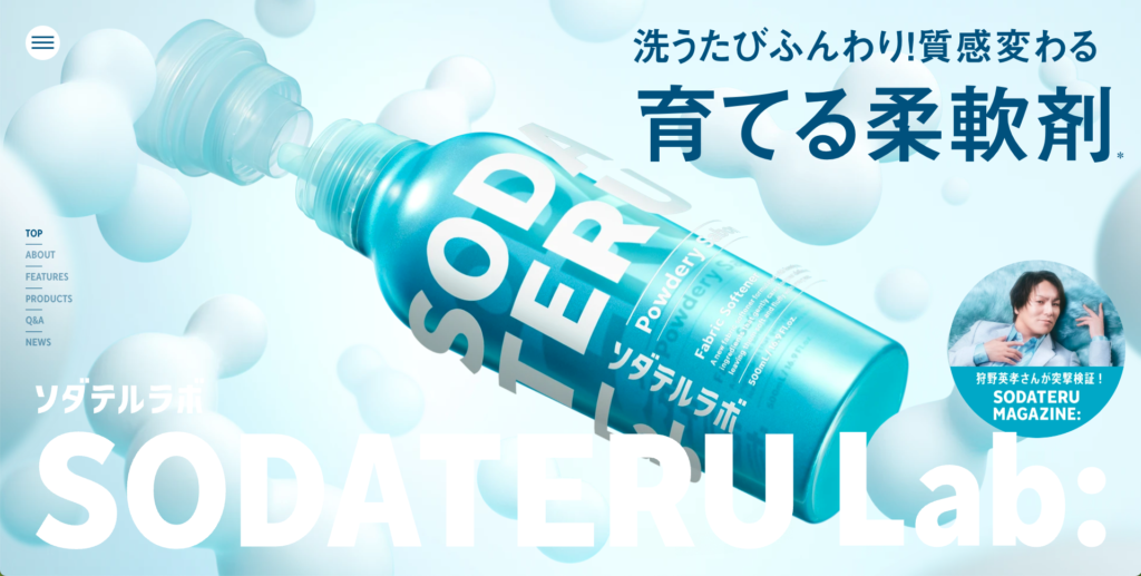 大きく表現した3Dのリアルな商品が、没入感とインパクトを与え、最後までスクロールしたくなるユニークなサイトになっています。