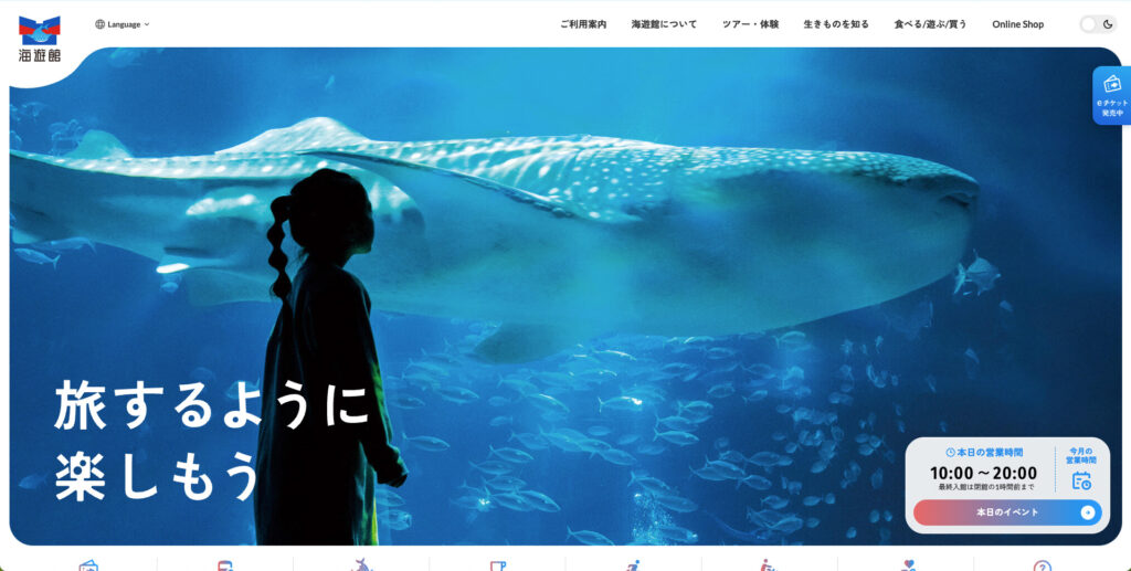 その中でも自分が気になったサイトが「世界最大級の水族館 海遊館」のサイトです。