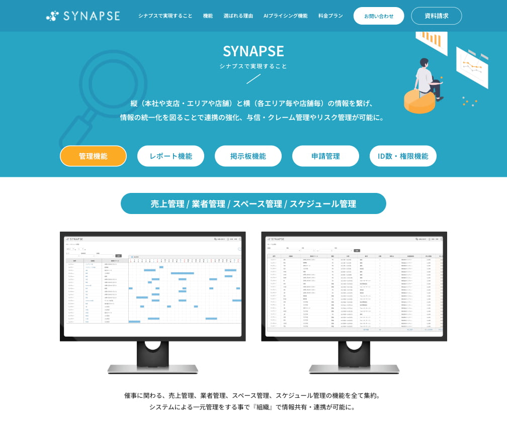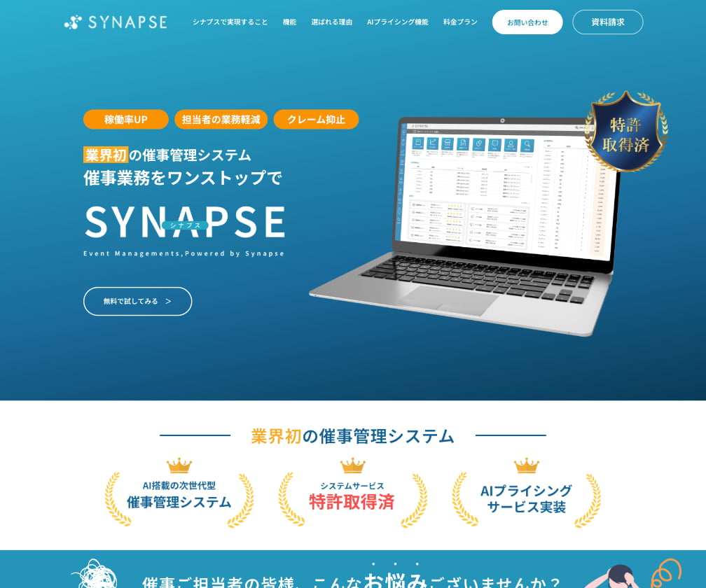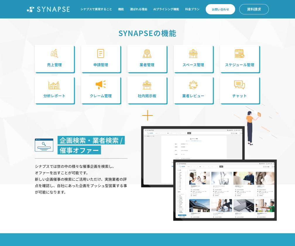 業界初の催事管理システム『シナプス』の紹介ページを作成したい。