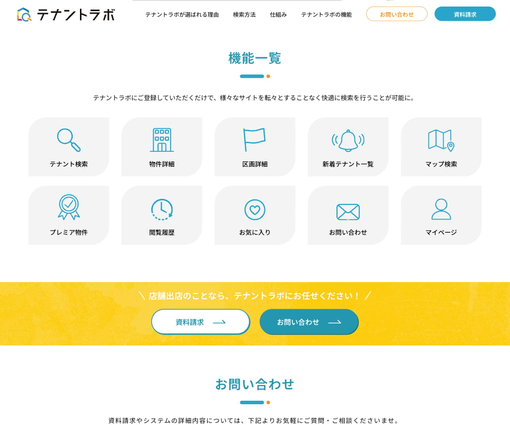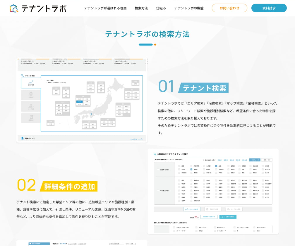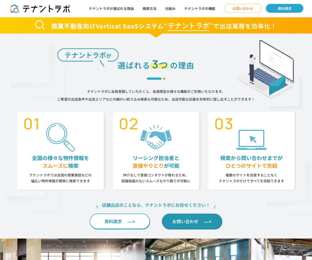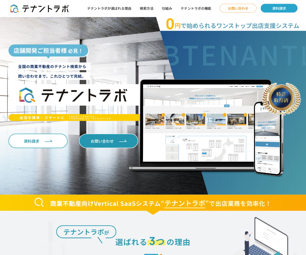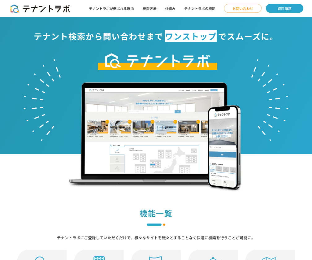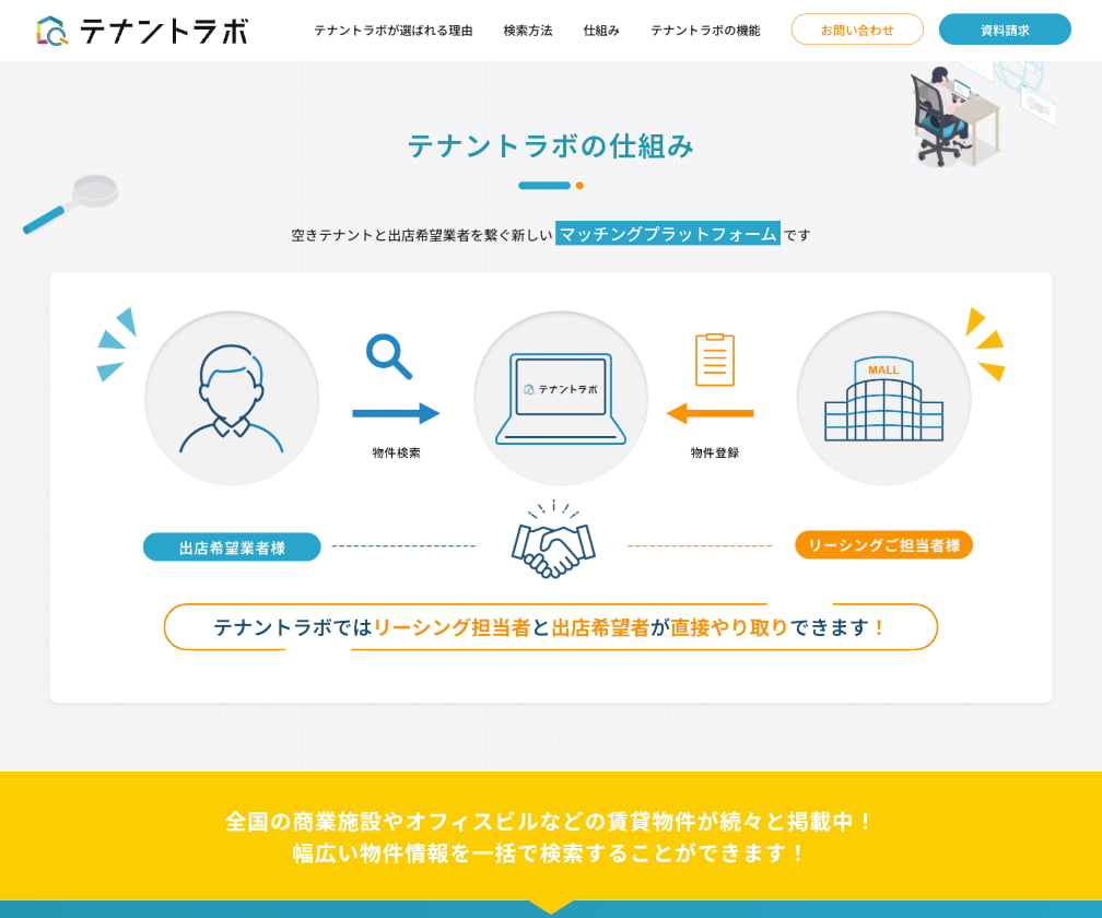 空きテナントと出店希望業者を繋ぐ、新しいマッチングプラットフォーム『テナントラボ』の紹介ページを作成したい。